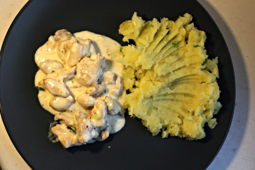 Zalijeme smetanou a necháme chvíli redukovat, aby se vytvořila hustší omáčka. (Pokud omáčka stále nebude houstnout a vy začnete propadat panice, rozmíchejte si půl lžičky škrobu ve dvou lžících vody a vmíchejte.)